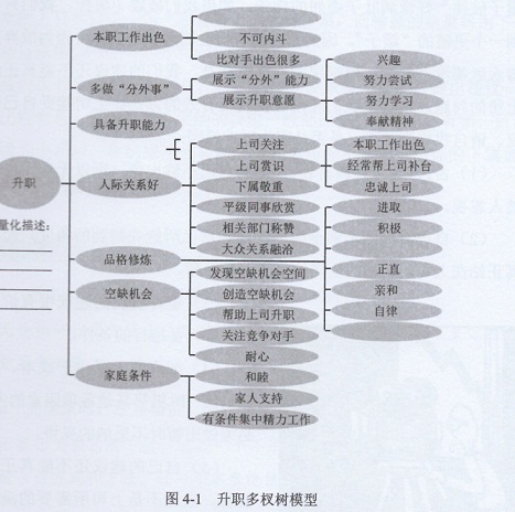 另外,還有諸如保持耐心等許多其他必要條件、充分條件以及輔助條件。下面的升職多權(quán)樹可以為我們制定一個更系統(tǒng)的升職計(jì)劃提供進(jìn)步參考(見圖4-1)。