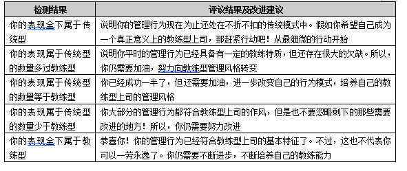 | 從不給員工答案 | 喜歡給自己過去類似成功經(jīng)驗的答案 |